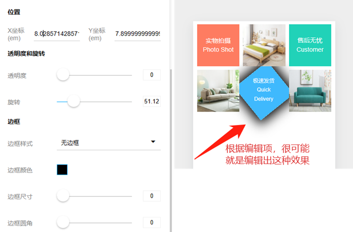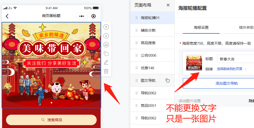 目前市场上采用这种拖拽式编辑的系统其实有很多,但都是很局限的装修功能。普通商家如果没有美工做图,很难装修出很好看的店铺效果。比方下图这种
