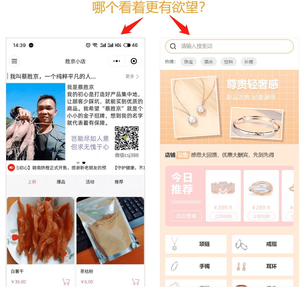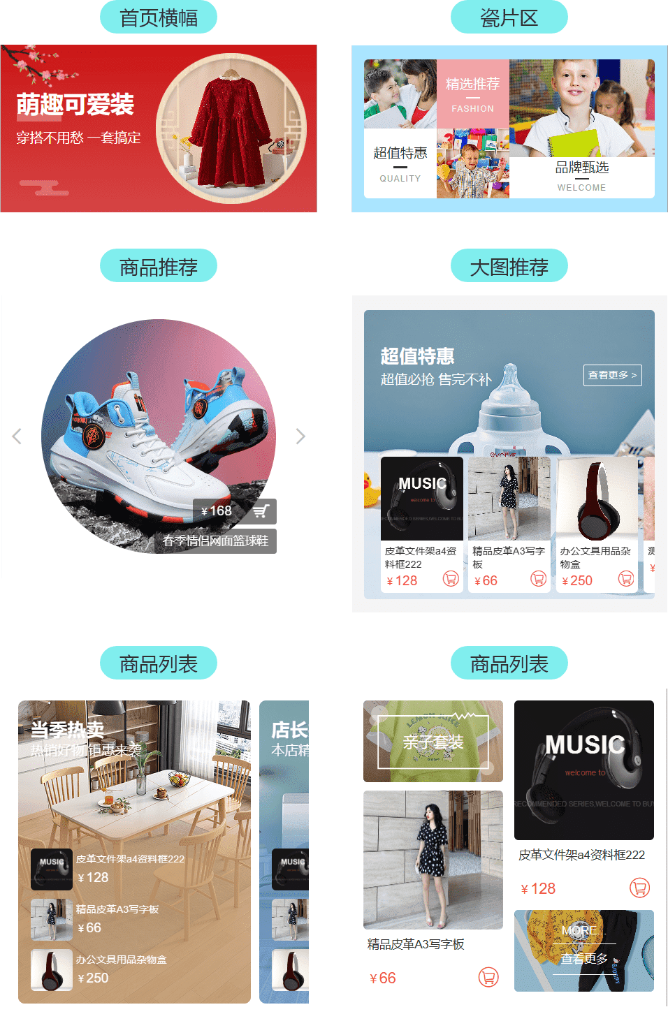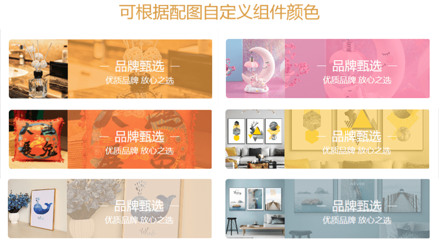 筑店魔方在设计功能之初就先假定用户只能提供简单文案和随意的图片。图片的颜色、内容和比例完全不知。在这种情况下,要求生成出好看的样式。因此大多数用户通过筑店编辑功能都能装修出好看的店铺,功能兼容性强。